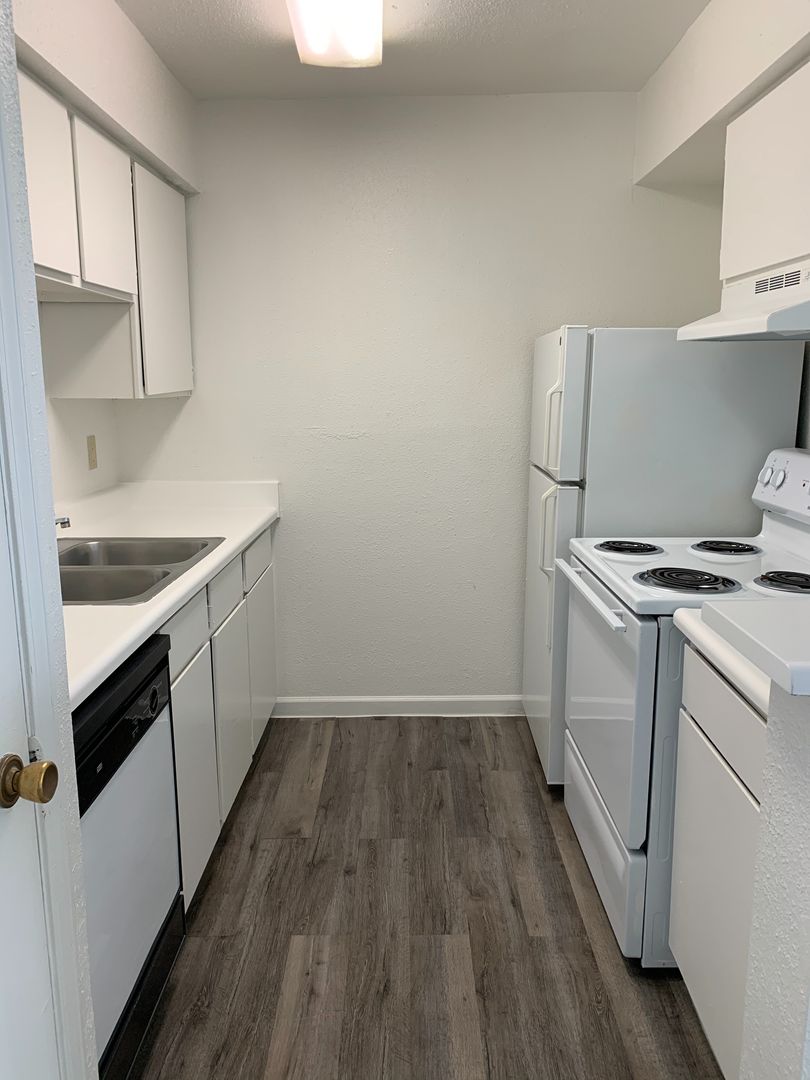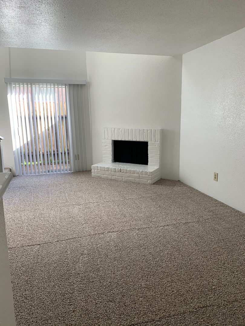 One bedroom, one and a 1/2 bathroom loft-style townhome with full-size washer/dryer connections and fireplace.